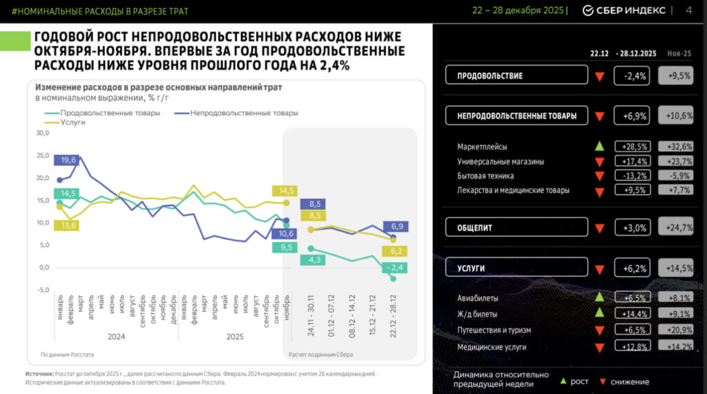 - Праздничный всплеск не компенсировал годовое охлаждение — потребитель вошёл в 2026 год в режиме экономии.